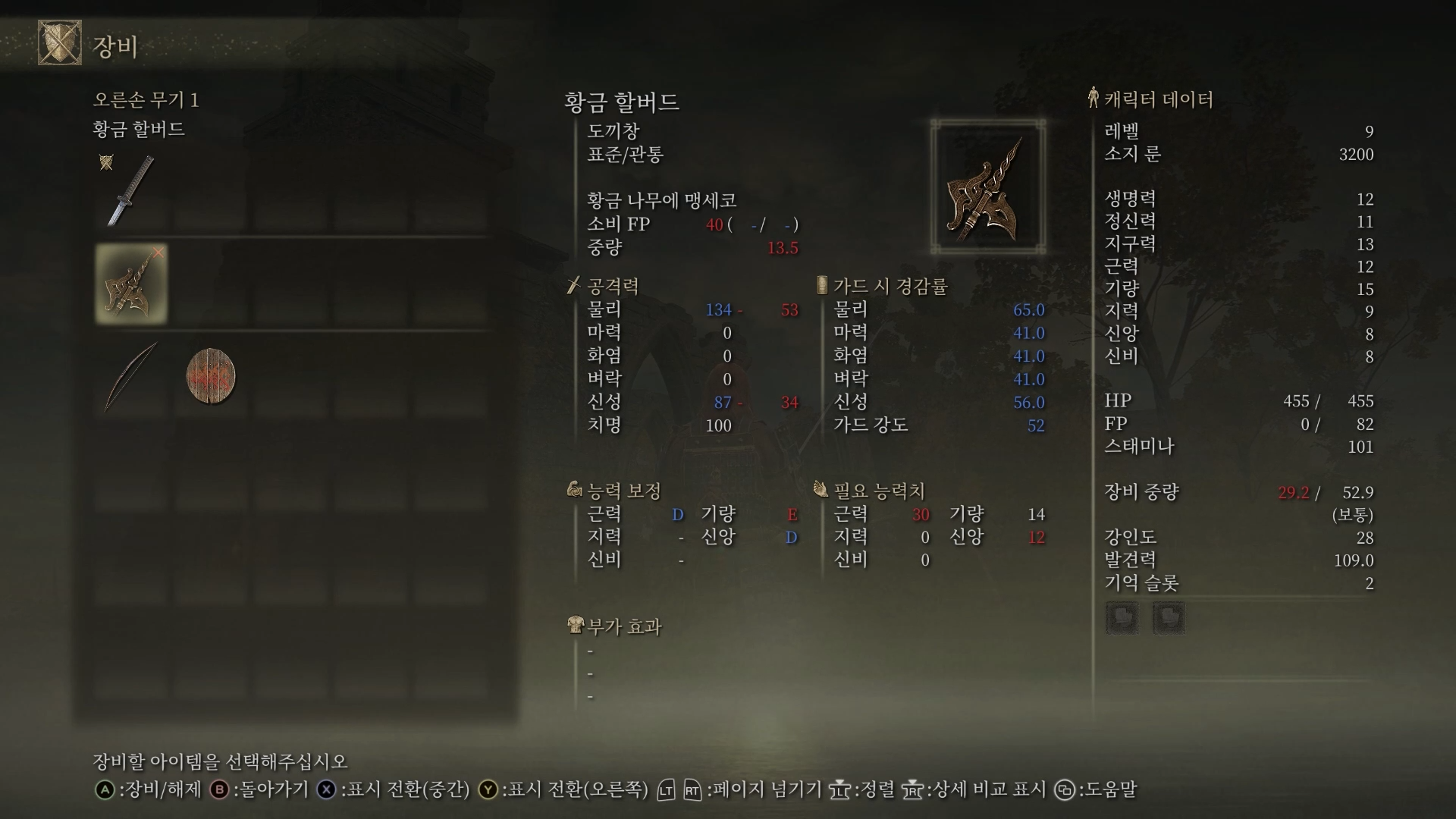 트리가드를 잡으면 황금 할버드를 주는데 착용 필요 능력치를 보니 레벨도 한참 더 올려야되네요.